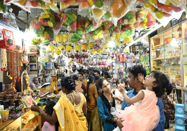 கிருஷ்ண ஜெயந்தியை கொண்டாடுவதற்காக கிருஷ்ணர் சிலைகள் உள்ளிட்ட பூஜை பொருட்கள் வாங்க மயிலாப்பூரில் உள்ள கடைகளில் கூடிய மக்கள் கூட்டம்.