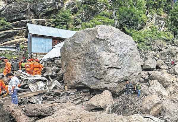 ஜம்மு காஷ்மீரின் கிஷ்துவார் மாவட்டத்தில் மேக வெடிப்பால் அதிதீவிர மழை பெய்தது. இதனால் ஏற்பட்ட காட்டாற்று வெள்ளத்தில், குடியிருப்பு பகுதிக்குள் அடித்து வரப்பட்ட பெரிய பாறை.