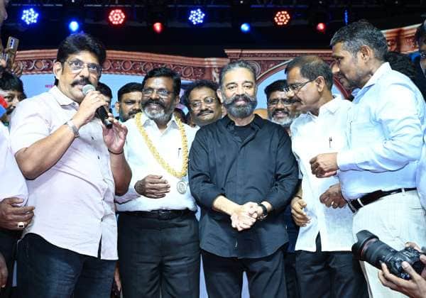 வி.சி.க. கட்சி தலைவர் திருமாவளவன் பிறந்தநாள் விழா சென்னை தேனாம்பேட்டை காமராஜர் அரங்கில் நடைபெற்றது. நிகழ்ச்சியில் மக்கள் நீதி மைய கட்சி தலைவர் கமல்ஹாசன்..