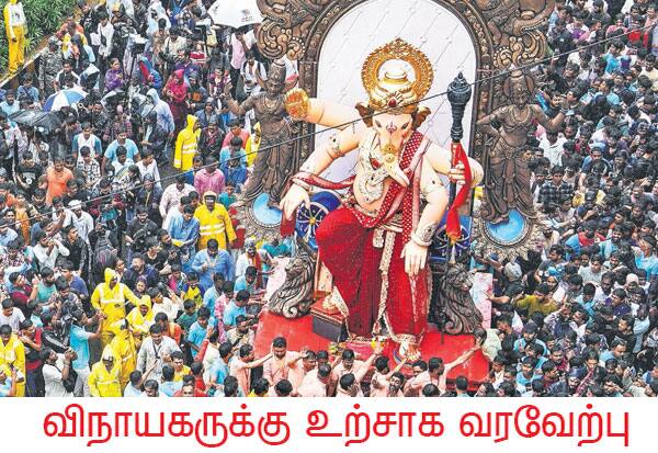 நாடு முழுவதும் விநாயகர் சதுர்த்தி வரும் 27ம் தேதி கொண்டாடப்பட உள்ளது. மஹாராஷ்டிராவில் வெகு விமரிசையாக நடைபெறும் இந்நிகழ்விற்காக அமைக்கப்பட்டுள்ள பந்தலில் வைக்க பக்தர்கள் புடை சூழ எடுத்து செல்லப்பட்ட விநாயகர் சிலை. இடம்: மும்பை