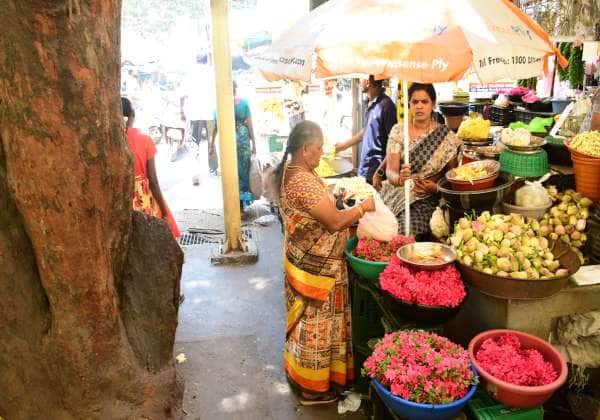 கோவை பூ மார்க்கெட்டில் பூக்கள் வாங்க வருபவர்களுக்கு இடையூறாக வழியை மறைத்து பூக்கடைகள் வைத்திருக்கின்றனர்.