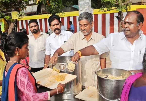 ஆவணி அமாவாசையை முன்னிட்டு மதுரையின் அட்சய பாத்திரம் டிரஸ்ட் சார்பில் தெப்பக்குளம் முத்தீஸ்வரர் கோவிலில் ., தமிழக சட்டமன்ற எதிர்க்கட்சித் துணைத் தலைவர் ஆர்.வி.உதயகுமார் அன்னதானம்