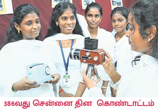 மயிலாப்பூரில் உள்ள ராணி மேரி கல்லூரியில், 386வது சென்னை தினம் நேற்று கொண்டாடப்பட்டது. அங்கு நடந்த கண்காட்சியில் வைக்கப்பட்டிருந்த பழங்கால கேமராவை ஆர்வமுடன் இயக்கி ரசித்த மாணவியர்.