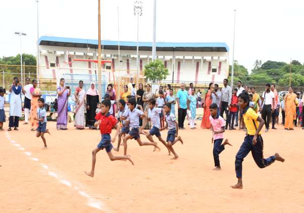 புதுச்சேரி அரசு சார்பில் தேசிய விளையாட்டு தினத்தை முன்னிட்டு உப்பளம் விளையாட்டு மைதானத்தில் சிறுவர்களுக்கான ஓட்டப்பந்தயம் போட்டி நடந்தது.