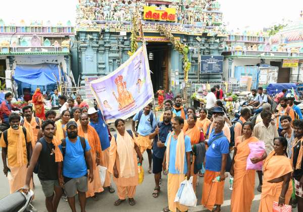 வேளாங்கண்ணி மாதா கோயிலில் நடக்கும் திருவிழாவில் கலந்து கொள்ள சென்னையில் இருந்து புதுச்சேரி வழியில் பாதயாத்திரையாக சென்ற பக்தர்கள்.