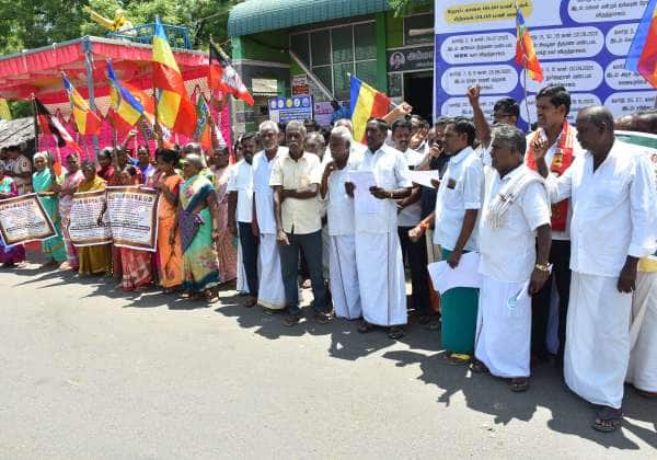 விருத்தாசலம் அடுத்த முதனை செம்பைய்யனார் கோவில் நிர்வாகத்தை கண்டித்து அனைத்து கட்சி சார்பில் பாலக்கரை அருகே மாபெரும் கண்டன ஆர்ப்பாட்டம் நடந்தது.