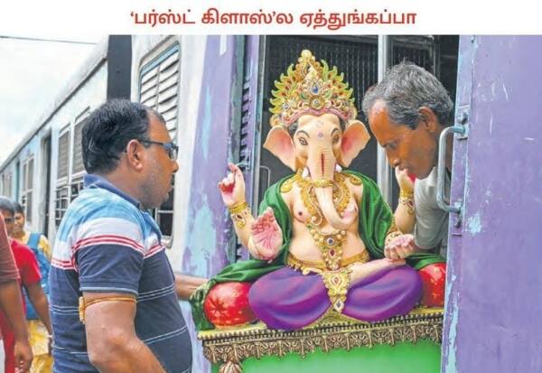 விநாயகர் சதுர்த்தி விழா நாடு முழுவதும் நாளை கொண்டாடப்படுகிறது. இதற்காக, மேற்கு வங்கத்தின் நாடியா மாவட்டத்தில் தயார் செய்யப்பட்ட விநாயகர் சிலையை ரயிலில் ஏற்றி, சீலதாவுக்கு எடுத்து சென்றனர்.