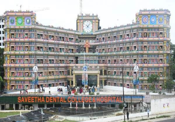 பூந்தமல்லி அடுத்த வேலப்பன்சாவடி சவிதா பல் மருத்துவமனை நுழைவாயில் கோயில் போல் அமைக்கப்பட்டுள்ளது