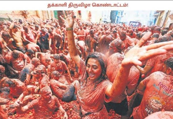 ஐரோப்பிய நாடான ஸ்பெயினின் புனோல் பகுதியில், ஒவ்வொரு ஆண்டும் ஆகஸ்ட் மாதம் கடைசி புதனில் தக்காளி திருவிழா நடக்கும். 120 டன் தக்காளிகளை ஒருவர் மீது ஒருவர் வீசி சண்டையிடும் இந்த திருவிழாவில் பங்கேற்று மகிழ்ந்தவர்கள்.