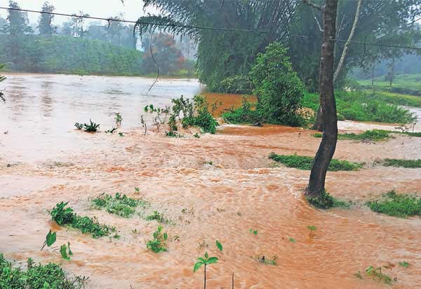 பந்தலூர் பகுதியில் பெய்த கனமழையின் போது, அத்திக்குன்னா வயல் பகுதியில் வெள்ளபெருக்கு ஏற்பட்டு விவசாய நிலங்கள் மூழ்கின.