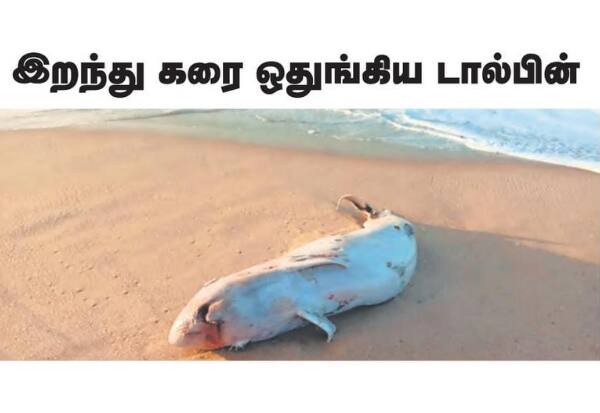 திருநெல்வேலி மாவட்டம், கூடங்குளம் அருகே இறந்த நிலையில் கரை ஒதுங்கிய டால்பின் மீன்.