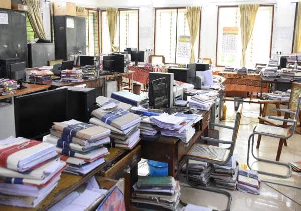 விழுப்புரம் கலெக்டர் அலுவலகத்தில் தமிழ்நாடு வருவாய்த்துறை அலுவலர் சங்கம் சார்பில் வேலை நிறுத்த போராட்டம் நடைபெற்றது. இதனால் அலுவலகம் வெறிச்சோடி காணப்பட்டது.