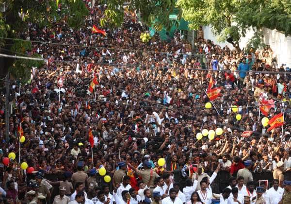சென்னை வேப்பேரியில் உள்ள ரித்தர்டன் சாலையில் விஜயை காண ஆர்வமுடன் காத்திருந்த தொண்டர்கள். கடைசி நேரத்தில் பிரசாரம் ரத்து செய்யப்பட்டதால் ஆத்திரமடைந்தனர். இடம்: வேப்பேரி, ரித்தர்டன் சாலை.