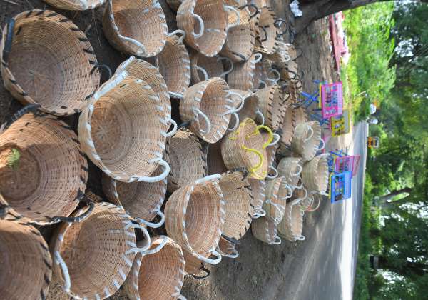 திருவள்ளூர் ஊத்துக்கோட்டை சாலை அம்பேத்கார் நகர் பகுதியில் ,ஆந்திர மாநிலம் கூடூர் பகுதியில் இருந்து நான்கு குடும்பங்கள் பூ எடுத்துச் செல்ல ஏதுவாக மூங்கில் கூடை தயார் செய்து விற்பனைக்கு வைத்துள்ளனர்.