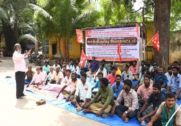 விழுப்புரம் தலைமை பொறியாளர் அலுவலகம் முன்பு தமிழ்நாடு மின் ஊழியர்கள் மத்திய அமைப்பு (சிஐடியு) சார்பில் இரண்டாவது நாளாக காத்திருப்பு போராட்டம் நடந்தது.
