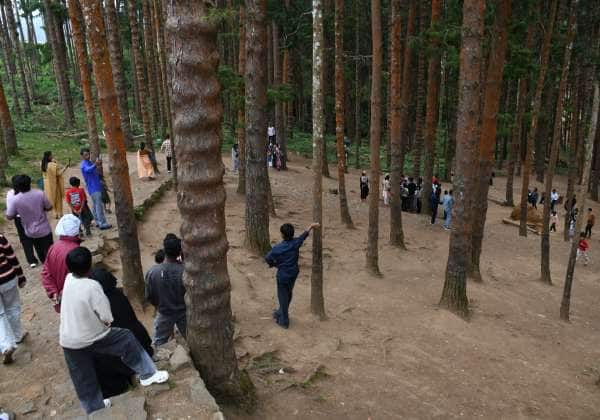 ஊட்டி தலைகுந்தா அருகேவுள்ள பைன்சோலைக்கு , ஏராளமான சுற்றுலா பயணிகள் வந்தனர்.