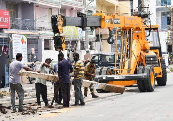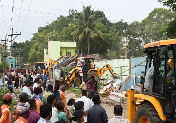 விழுப்புரம் பவர் ஹவுஸ் சாலையோரம் கட்டப்பட்டு இருந்த ஆக்கிரமிப்பு வீடுகள் அகற்றம்.