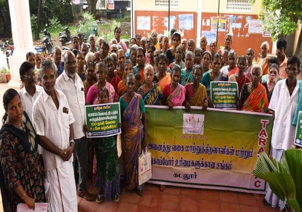 கடலூர் ஊராட்சி ஒன்றிய அலுவலகத்திற்கு மாற்றுத்திறனாளிகள் 100 நாள் வேலை கேட்டு மனு கொடுக்க வந்தனர்.
