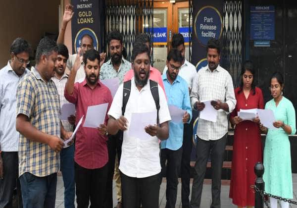 அனைத்து வங்கிகளையும் தேசிய மயமாக்கல் உள்ளிட்ட கோரிக்கைகளை வலியுறுத்தி, திருப்பூர் தாடி காரமுக்கு பெடரல் வங்கி முன்பு, வங்கி ஊழியர் சங்கம் சார்பில் ஆர்ப்பாட்டம் நடந்தது.