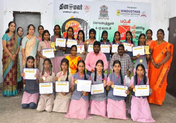 தினமலர் - பட்டம் இதழ், ஆச்சாரியா கல்வி நிறுவனங்கள் இணைந்து நடத்தும் பதில் சொல் ; அமெரிக்கா செல் என்ற மெகா வினாடி வினா போட்டி விழுப்புரம் சரஸ்வதி மெட்ரிக்குலேஷன் மேல்நிலைப் பள்ளியில் நடந்தது. போட்டியை கலெக்டர் ஷேக் அப்துல் ரஹ்மான் குத்துவிளக்கு ஏற்றி துவக்கி வைத்தார். அருகில் புதுச்சேரி தினமலர் வெளியீட்டாளர் கே.வெங்கட்ராமன்.