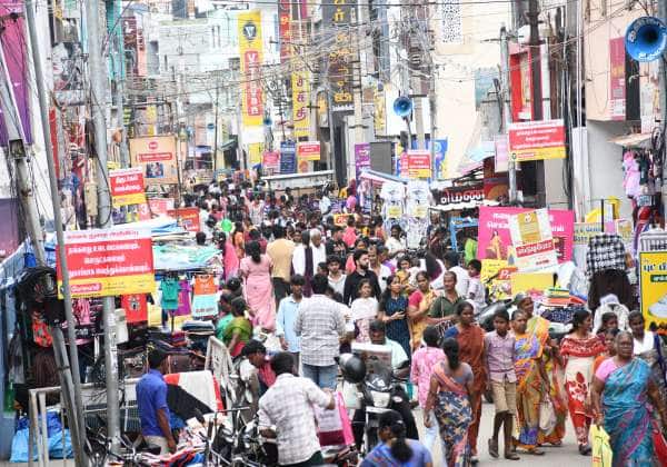 தீபாவளி பண்டிகையை முன்னிட்டு புத்தாடைகள் வாங்க கடைவீதிகளில் குவிந்த மக்கள் கூட்டம். இடம்: உடுமலை சீனிவாசவீதி.
