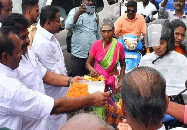 அ.தி.மு.க., ஆண்டு விழாவை முன்னிட்டு சிவகங்கையில் மக்களுக்கு இனிப்பு வழங்கி கொண்டாடிய கட்சி தொண்டர்கள்.