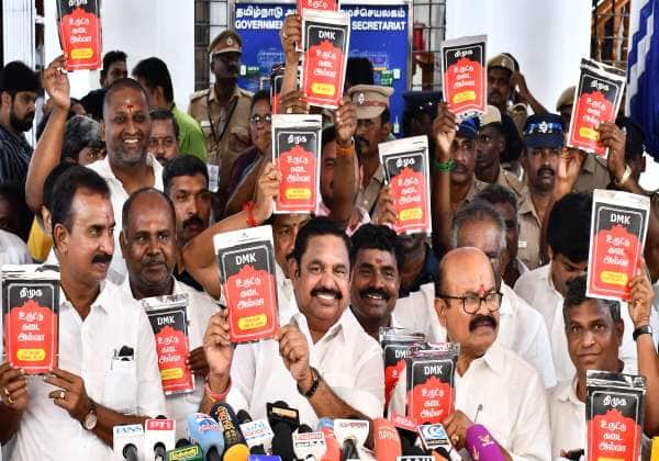 சட்டசபை கூட்டம் முடிந்து பத்திரிக்கையாளர்களை சந்தித்த எதிர்க்கட்சித் தலைவர் இபிஎஸ், தி.மு.க., அரசின் உருட்டு கடை அல்வா தான் கிடைக்கும் என்று கையில் அல்வா மாதிரி பாக்கெட்டை வைத்து கிண்டல் செய்தார்.