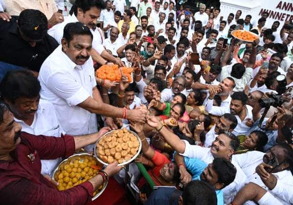 அதிமுகவின் 54 ஆம் ஆண்டு தொடக்க விழாவை முன்னிட்டு பொதுச் செயலாளர் இபிஎஸ்சென்னை ராயப்பேட்டை தலைமை அலுவலகத்தில் தொண்டர்களுக்கு இனிப்பு வழங்கினார்.