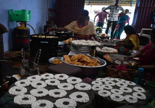 தீபாவளி பண்டிகையை முன்னிட்டு விற்பனைக்காக தயாராகும் பலகாரங்கள். இடம்: திருநெல்வேலி.