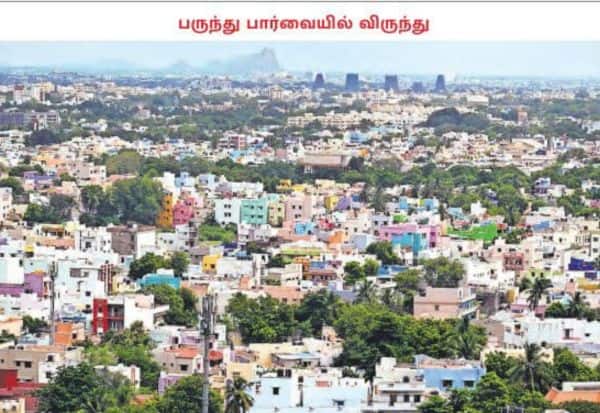 துறைமுகத்தில் கலர்கலராய் கன்டெய்னர் டப்பாக்களை அடுக்கி வைத்துள்ளனரோ என்று கருத வேண்டாம். கட்டடங்களுக்கு மத்தியில் மீனாட்சி அம்மன் கோபுரங்களும், ஒத்தக்கடை யானைமலையும் ஒன்றாய் சேர்ந்து பருந்து பார்வையில் 'கண்ணுக்கு விருந்தாய்' கேமராவில் பதிவாகியுள்ளது. இடம்: மதுரை பசுமலை.