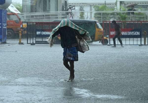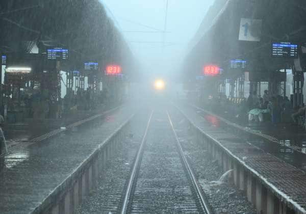 சென்னை நகரில் பலத்த மழை பெய்தது. இடம்: சென்ட்ரல் ரயில் நிலையம் வளாகம்