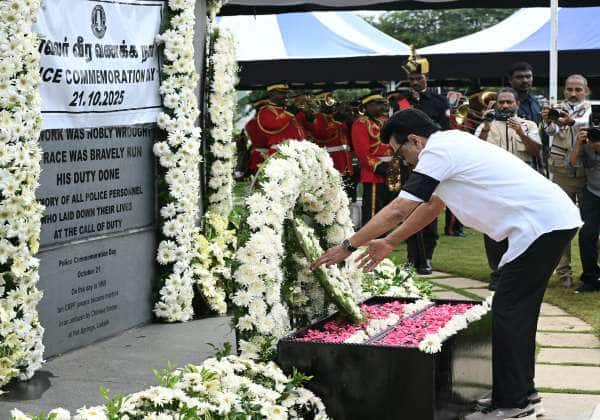 காவலர் வீரவணக்க நினை தினத்தை ஒட்டி சென்னை மயிலாப்பூர் டி.ஜி.பி., அலுவலகத்தில் உள்ள காவலர் நினைவு சின்னம் முன்பு முதல்வர் ஸ்டாலின் மலர்வளையம் வைத்து மரியாதை செலுத்தினார்.