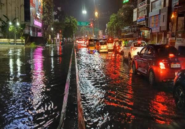 சென்னையில் மாலை கனமழை பெய்தது. இடம்: அண்ணா ஆர்ச்.