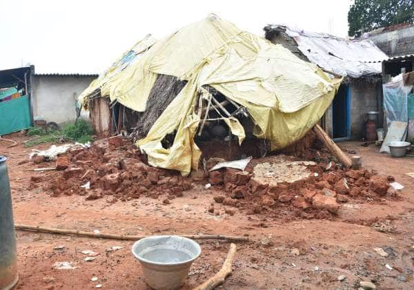 தொடர் மழையால் விருத்தாசலம் அடுத்த குப்பநத்தம் பகுதியில் கூரை வீடு மழையால் சேதம் அடைந்தது.