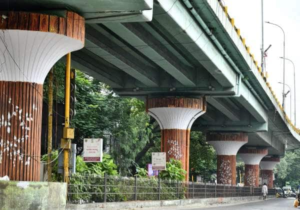 சென்னை ஆழ்வார்பேட்டை உள்ள மேம்பாலத்தின் தூண்கள் வண்ணம் பூசப்பட்டு புதுப்பொலிவுடன் காணப்படுகிறது.
