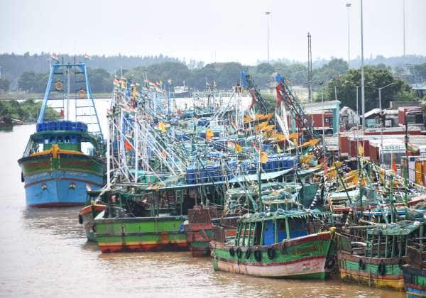 வடகிழக்கு பருவமழை தொடர்ந்து புயல் எச்சரிக்கை காரணமாக மீனவர்கள் மீன் பிடிக்க. கடலுக்குள் செல்லாமல் தங்களது படகுகளை பாதுகாப்பாக நிறுத்தி வைத்துள்ளனர். இடம்: கடலூர்