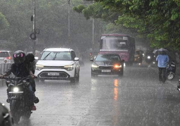 சென்னை நகரில் பல்வேறு இடங்களில் பரவலாக மழை பெய்தது. இடம்: வேளச்சேரி நெடுஞ்சாலை.