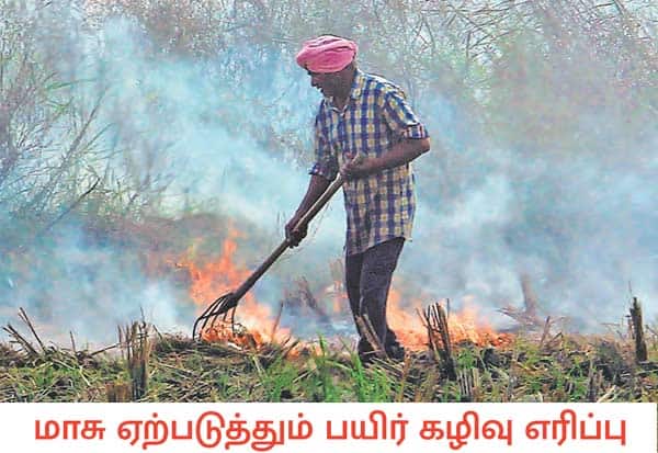 பஞ்சாபின் பாட்டியாலா புறநகரில் நெல் அறுவடைக்கு பின் விவசாயி தன் வயலில் மீதமுள்ள பயிர் கழிவுகளை எரிக்கிறார். பயிர் கழிவு எரிப்பால் சுற்றுச்சூழல் மாசடைகிறது. குறிப்பாக சுவாச நோய்களுக்கு காரணமாகிறது.