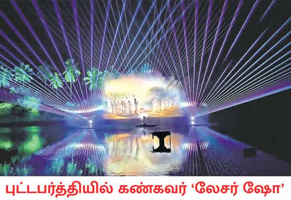 பகவான் ஸ்ரீ சத்ய சாய்பாபாவின் 100வது பிறந்த நாள் விழா, பல்வேறு நிகழ்வுகளாக கொண்டாடப்பட்டு வருகிறது. இதன் ஒரு பகுதியாக, ஆந்திராவின் புட்டபர்த்தியில் உள்ள சித்ராவதி ஆற்றங்கரையில் கண்கவர் லேசர் ஒளிக்காட்சி துவங்கியது. இது வரும் 23ம் தேதி வரை தினமும் இரவு 7.30 மணி முதல் 9.30 மணி வரை நடைபெறும்.