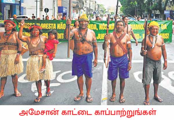 தென் அமெரிக்க நாடான பிரேசிலின் பெலம் நகரில் காலநிலை உச்சி மாநாடு நடக்கிறது. இதில் அந்நாட்டின் பழங்குடியின செயற்பாட்டாளர்கள் கலந்து கொண்டனர். பாரம்பரிய உடை, முக அலங்காரம், இசைக்கருவிகள் ஆகியவற்றுடன் வந்த அவர்கள், பூமியின் நுரையீரலான அமேசான் காட்டை காப்பாற்றக் கோரி கோஷமிட்டனர்.