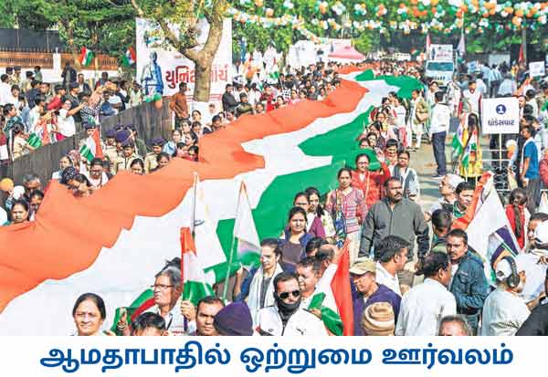 நாட்டின் முதல் துணை பிரதமரும், சுதந்திர போராட்ட வீரருமான சர்தார் வல்லபாய் படேலின், 150வது பிறந்த நாளையொட்டி, குஜராத் மாநிலம் ஆமதாபாத்தில் நடந்த ஒற்றுமை ஊர்வலத்தில் திரளாக பங்கேற்ற மக்கள்.
