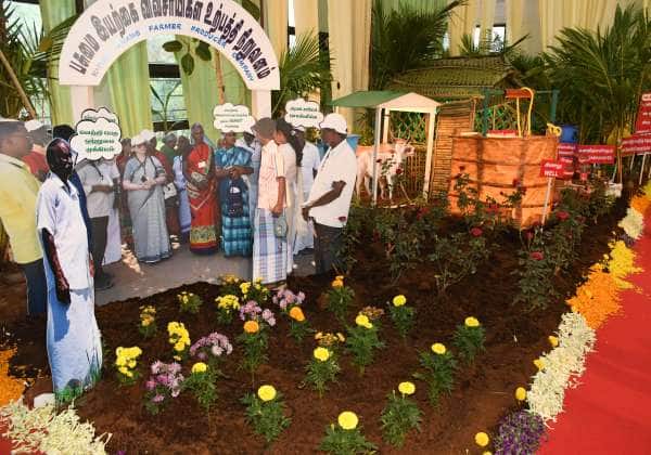கோவை கொடிசியா வளாகத்தில் நடந்த இயற்கை வேளாண்மை கண்காட்சியில் பூத்தோட்டம்.