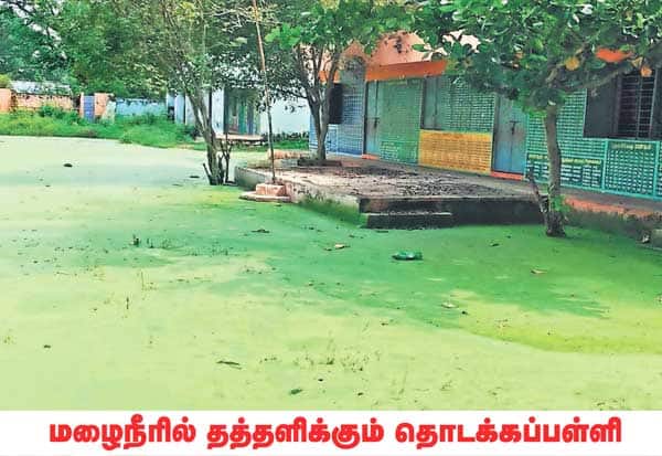 வேலூர் மாவட்டம், குடியாத்தம் அடுத்த ஆந்திர மாநில எல்லையோரம் அமைந்துள்ளது பரதராமி அரசு ஊராட்சி தொடக்கப்பள்ளி. கடந்த ஒரு மாதத்திற்கு முன் பெய்த மழைநீர் பள்ளி வளாகத்தில் குளம்போல் தேங்கியுள்ளதால், மாணவர்கள் அவதிப்படுகின்றனர்.