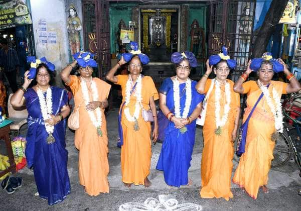 புதுச்சேரியில் விரதம் இருந்த பெண் பக்தர்கள் சபரிமலைக்கு செல்ல வசதி இல்லாததால் கோவிந்தசாலை ஐயப்பன் கோவிலில் விரதம் முடிக்க பாதயாத்திரையாக வந்தனர்.