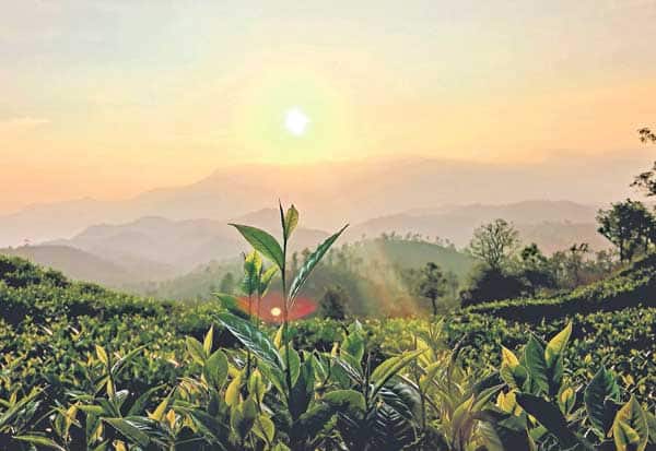 பந்தலூரில் அதிகாலை நேரத்தில் ஆதவனின் கதிர்கள் பட்ட போது, தங்க நிறத்தில் மின்னும் பசுந்தேயிலை, இப்பகுதிகளின் வாழ்வாதாரத்தில் முக்கிய பங்கு வகிக்கிறது.
