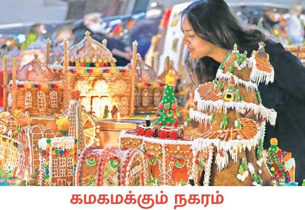 அடுத்த மாதம் 25ம் தேதி கிறிஸ்துமஸ் பண்டிகை கொண்டாடப்பட உள்ளது. இதையொட்டி, ஐரோப்பிய நாடான பிரிட்டனின் லண்டன் நகரில் நடைபெற்ற கண்காட்சியில், 'தி ஜிஞ்சர் பிரெட் சிட்டி' என்ற இஞ்சி ரொட்டியால் உருவாக்கப்பட்டிருந்த நகரத்தை ஆர்வமுடன் பார்வையிட்ட பெண்.