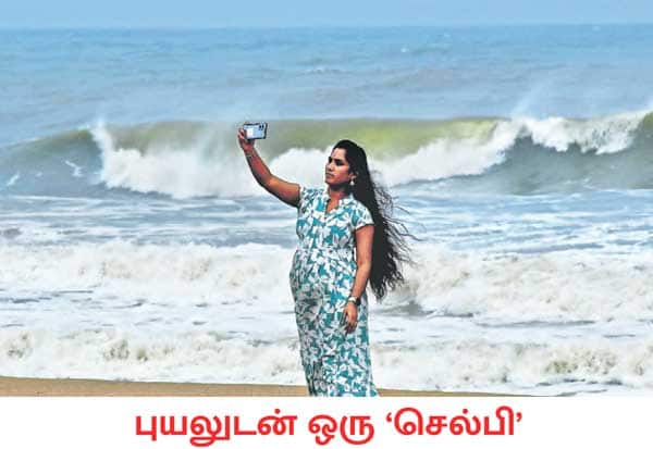 டிட்வா புயல் காரணமாக,விழுப்புரம் மாவட்டம் கோட்டகுப்பத்தில் கடல் கொந்தளிப்புடன் காணப்பட்டது. அலைகளுக்கு முன் நின்று செல்பி எடுத்து மகிழ்ந்த பெண்.
