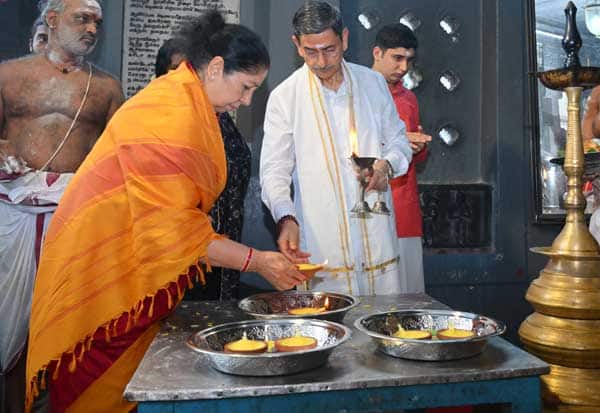 கார்த்திகை தீபம் முன்னிட்டு கவர்னர் ரவி மற்றும் குடும்பத்தினர், சென்னை கபாலீஸ்வரர் கோவிலில் தீபம் ஏற்றி, வழிபாடு செய்தனர்.