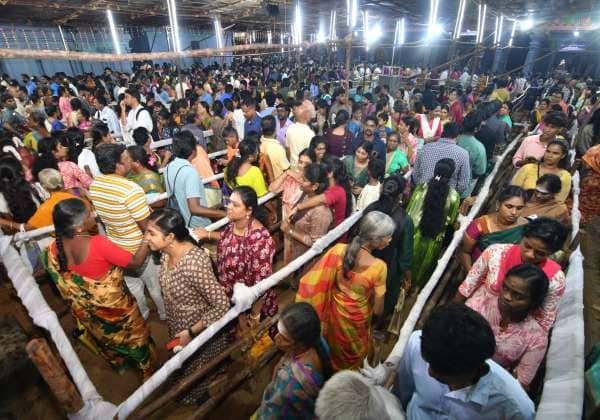 சென்னை திருவொற்றியூர் வடிவுடையம்மன் கோவிலில் சுவாமி தரிசனம் செய்ய நீண்ட வரிசையில் காத்திருந்த பக்தர்கள்.