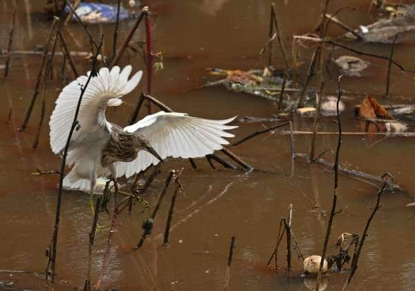 விட்டு விட்டு பெய்து வரும் மழையால் ஆங்காங்கே காய்ந்து கிடந்த தடுப்பணைகளில் சிறிதளவு தேங்கியுள்ள நீரில் இறை தேடி வரும் இந்த கொக்கு அப்பகுதிக்கு மேலும் அழகு சேர்க்கிறது. இடம்: கோவை பேரூர் பச்சாபாளையம்.